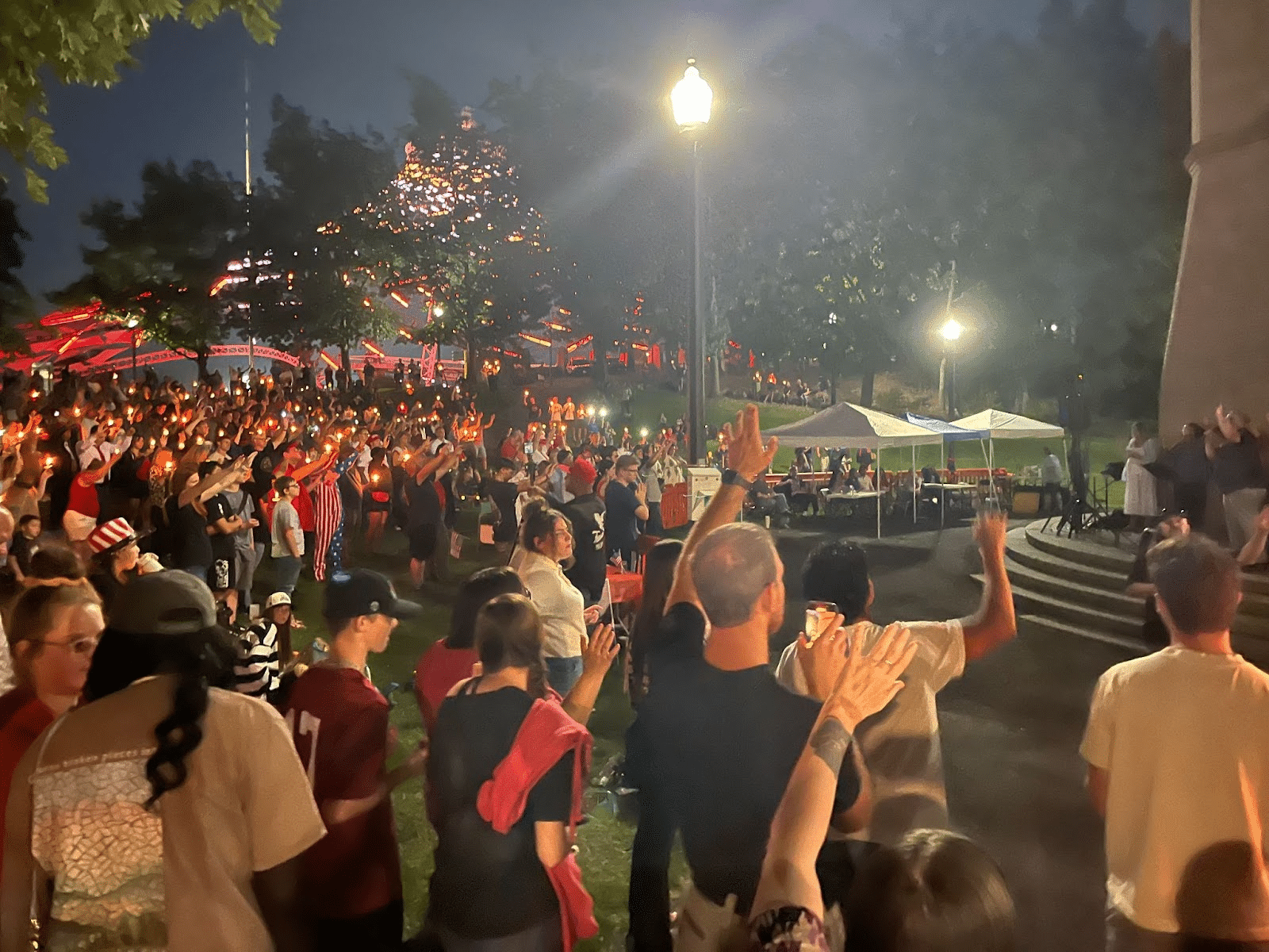 Three days after he died, I went to a candlelight vigil for Kirk under the clock tower in Riverfront Park. Hundreds of people had shown up to pray and hear TPUSA chapter leaders, pastors, and conservative activists talk about their fallen leader. For the first time, I saw Spies step forward and speak from the stage. (He hinted at nonviolence, saying conservatives should not “retaliate” but promised Kirk’s work would continue.) As a group, the speakers painted Kirk as a moderate conservative and kind-hearted Christian mostly interested in bringing people to Jesus.