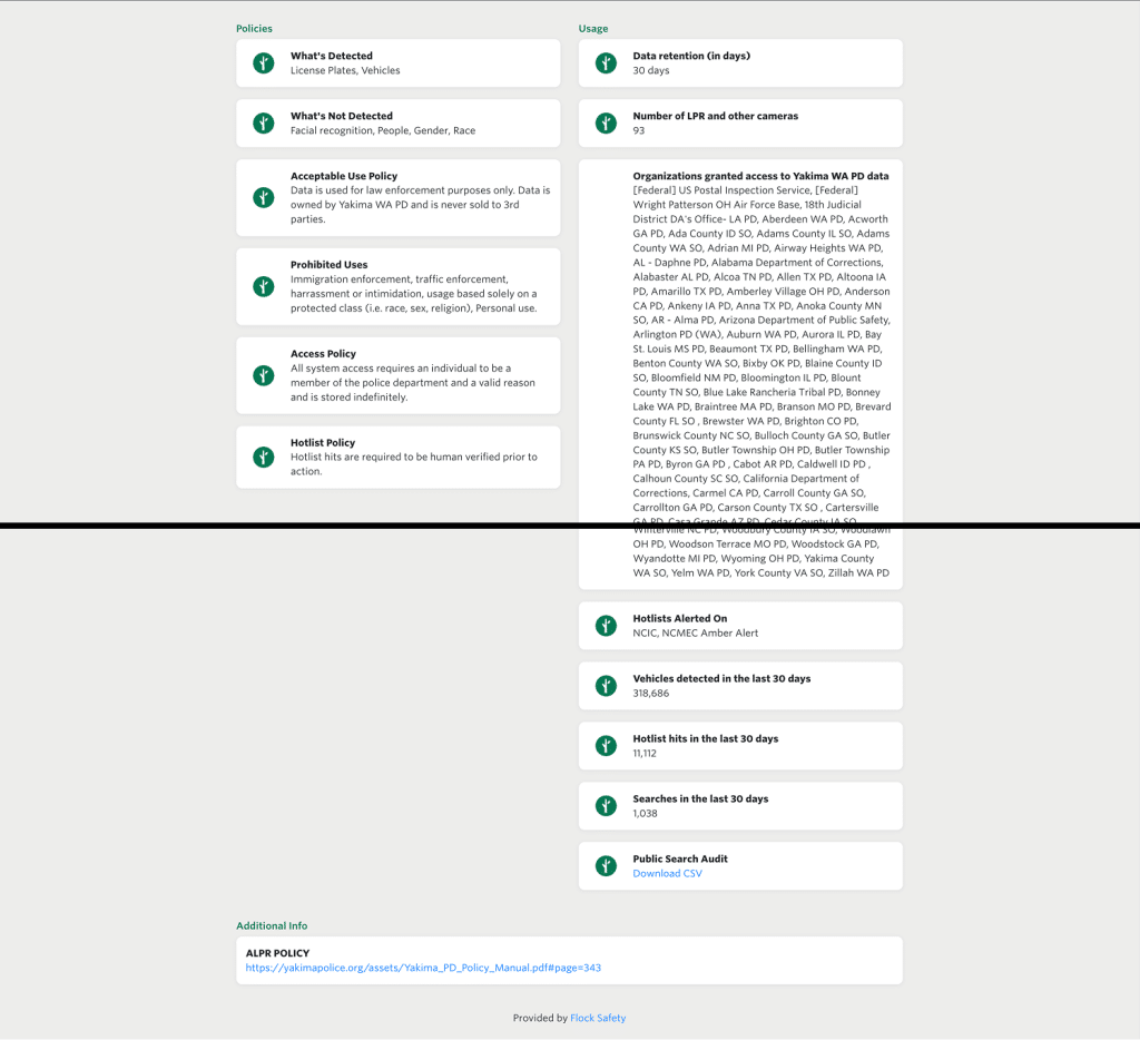While RANGE has managed to get audit data from Spokane County’s Flock system via public records requests, Arlington and Everett have outright refused to provide the data. And Flock has recently given its clients the ability to strip search reasons from the audits they use for public records requests.