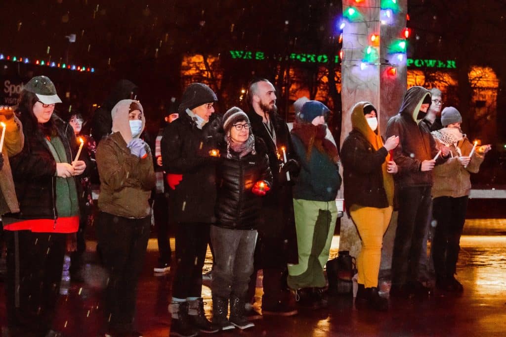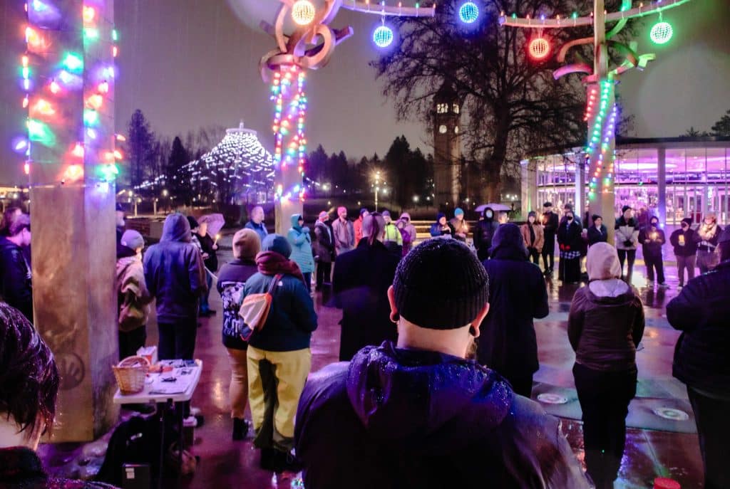 The brutal federal responses to protests nationwide didn’t stop more demonstrations and vigils from springing up in Minneapolis and across the country, including here in Spokane. Photojournalist Sandra Rivera was on scene to document the rapid response vigil, where more than 50 folks gathered at the fountain in Riverfront Park to mourn Good and prepare the community for continued action against ICE.