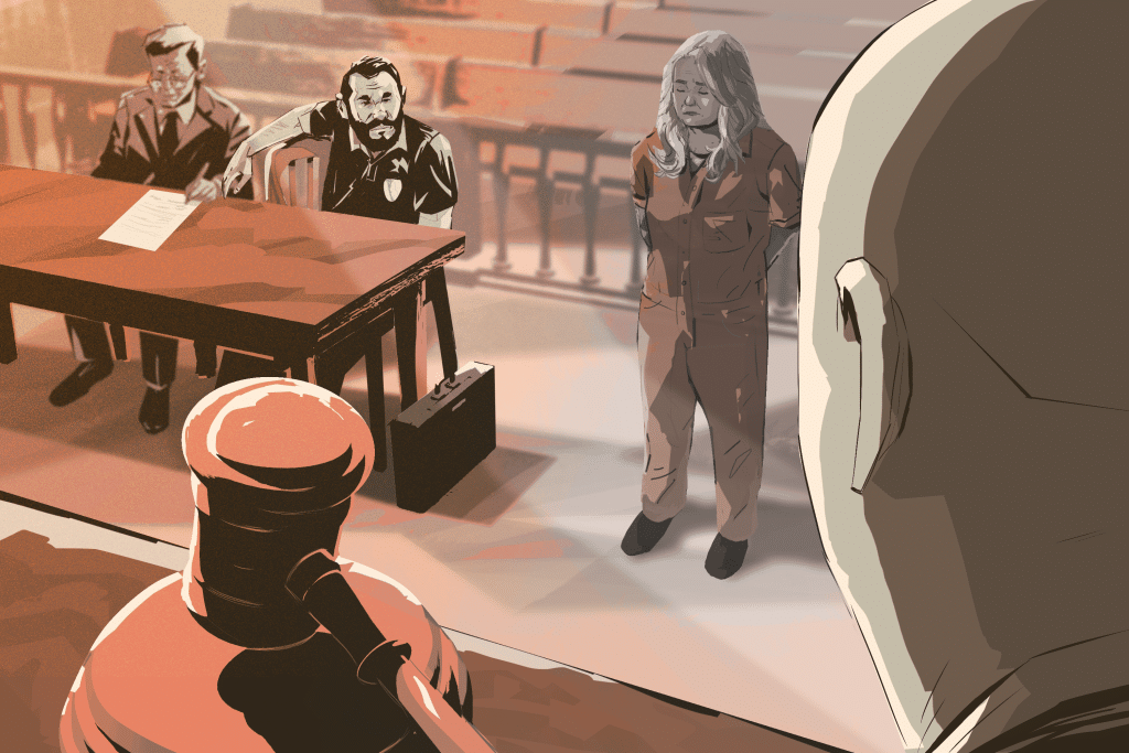 In a small courthouse in southeast Idaho, a woman incarcerated at the nearby prison had just finished testifying that a male guard came into the bathroom on her cellblock and kissed her on at least five different occasions.
