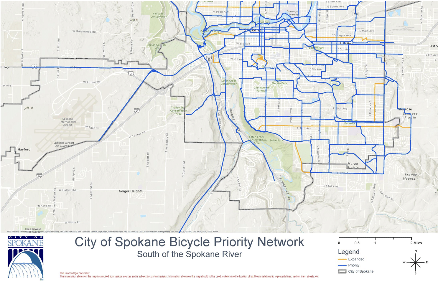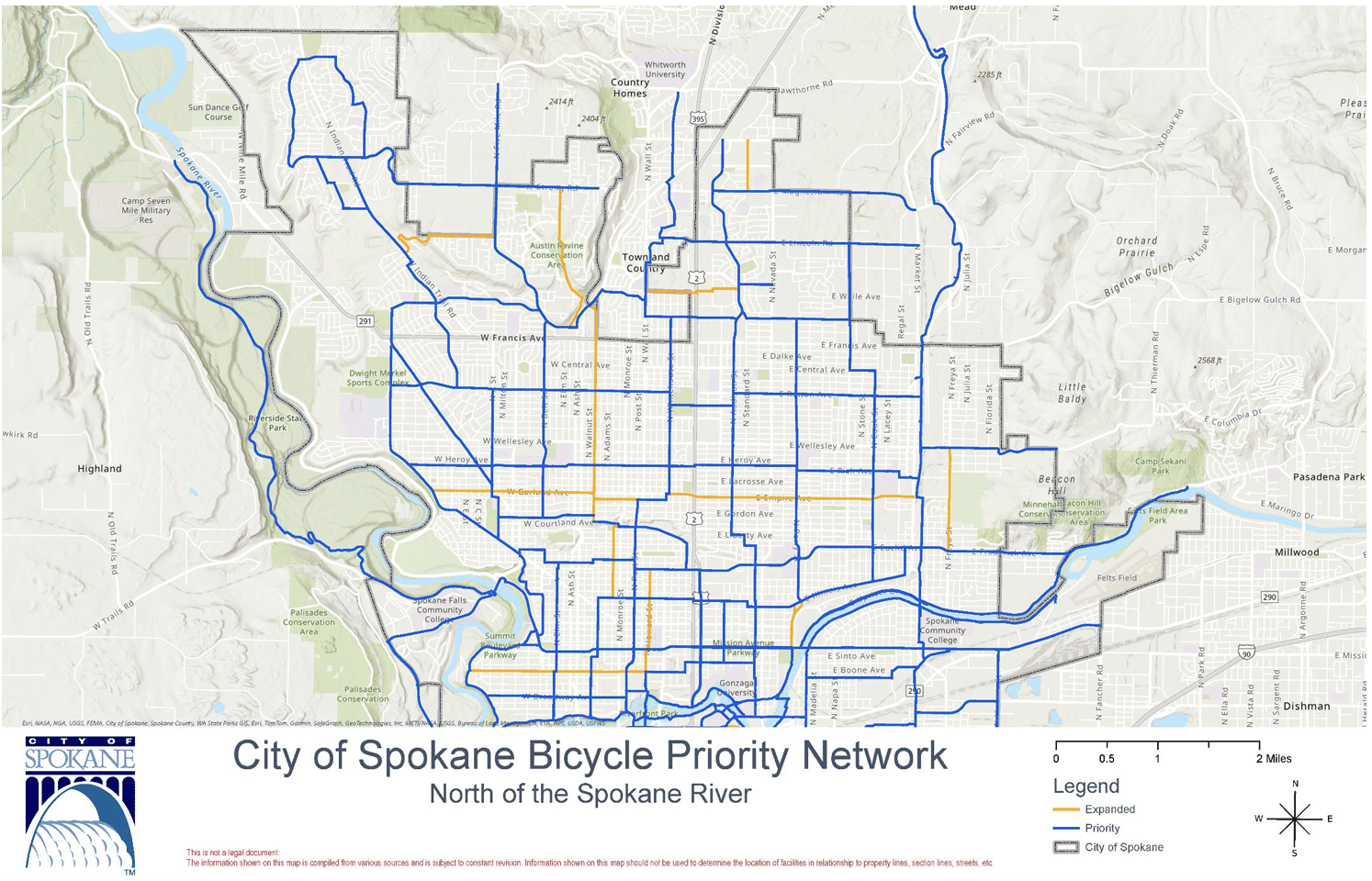 The city is also planning to adopt the Bicycle Priority Network (BPN) as a guide for updating elements in the city’s Comprehensive Plan. The goal of the BPN is “to identify routes that, with targeted investments, are most likely to provide the optimal biking and rolling experience for safety, user experience and route directness,” so routes on the list are prioritized for city funding. You can read the whole BPN starting on page 371 of the agenda, but here’s a preview of the routes on the network: