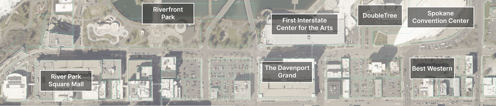 The project runs just over a half mile, from Lincoln Street on the west side to Division Street on the east. This stretch is a major downtown destination for both locals and visitors, positioning it as a corridor of enormous economic value: it links the Spokane Convention Center, the First Interstate Center for the Arts, three hotels (including The Davenport Grand), River Park Square, bars and restaurants and downtown’s crown jewel Riverfront Park.
