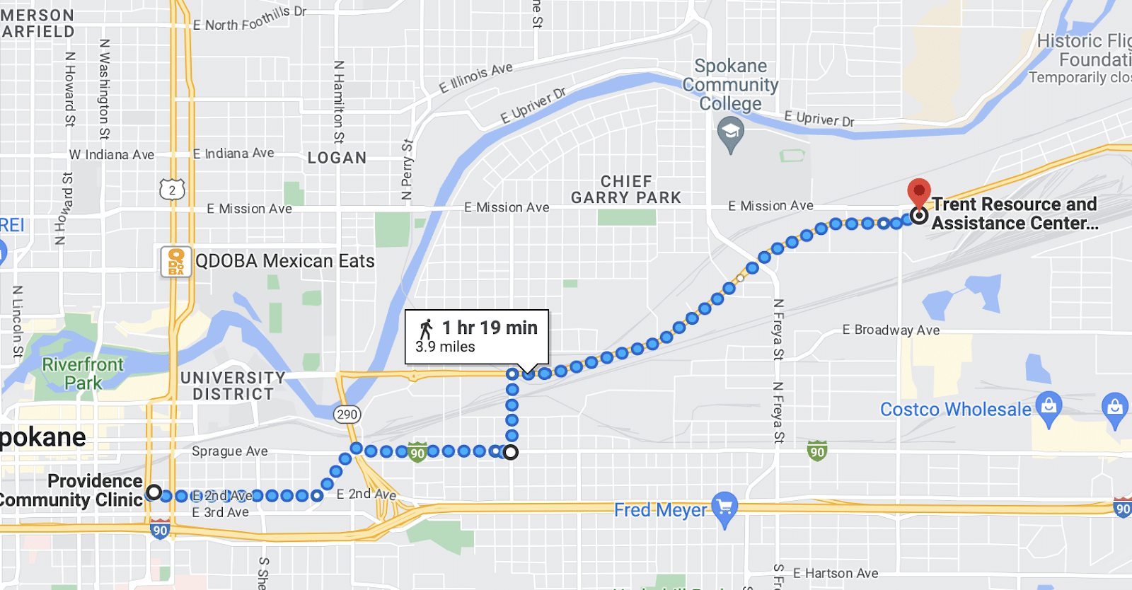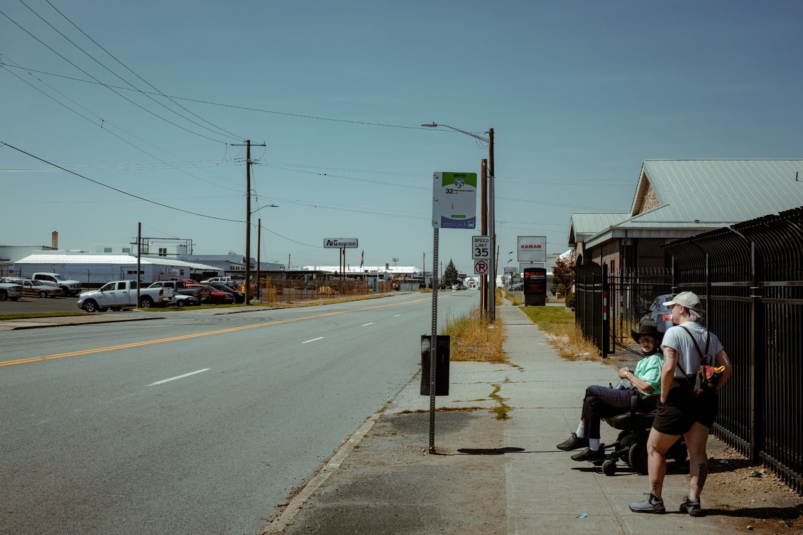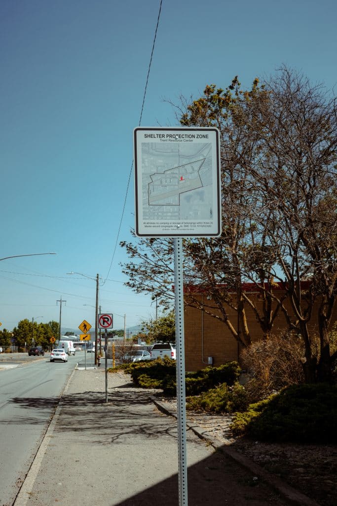 There’s no shade to be found. No restaurants or public spaces to rest in. And, not far down Trent even the sidewalks disappear, giving way to a dusty, gravely scree. The entire journey is difficult. This section is all but impassable for anyone in a wheelchair. This point in particular frustrates Tobin, who went to school for industrial design and took courses in “the human factor.”