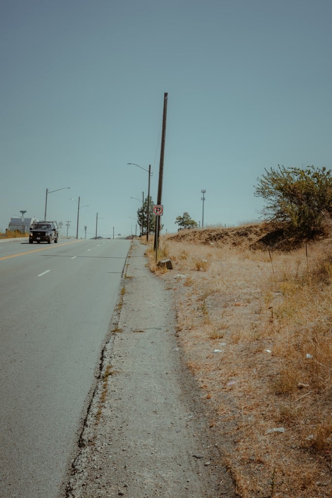 At about Trent and Freya, Tobin’s stamina finally began to flag. The conversation slowed. The bleach-white UV rays beat down on us from above while heat radiating up from the asphalt pushed through the soles of our shoes and sunk into our calves. There is nowhere to drink water, nowhere to sit, nowhere to rest.