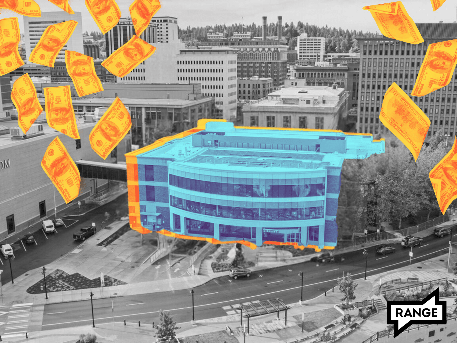 Spokane Falls Blvd and Lincoln Street, and Central Public Library