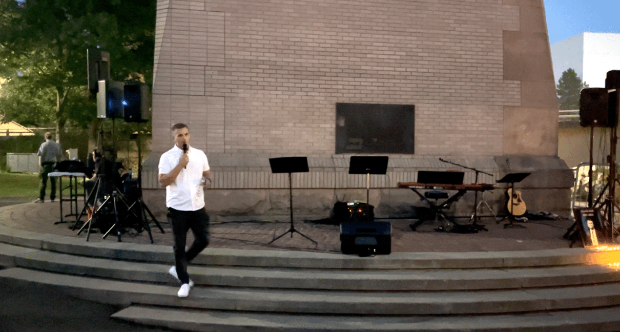 Spies filled in some of his biography in a speech he gave during a September 13 prayer vigil OFM organized for Kirk, who had been assassinated in Utah on September 10. In 2022, Spies had worked as a graduate instructor for Eastern Washington University (EWU). But that experience had put a bad taste in his mouth when the university started requiring employees to be vaccinated for COVID. “I was going to lose my job because I didn’t want to put that in my body,” he said.