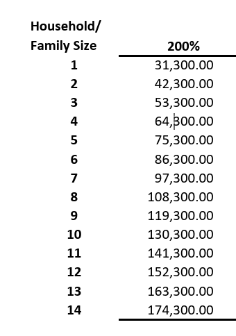 - Individuals whose income is at or below 200% of the Federal Poverty Level and are determined to be eligible based on other appropriate documentation.