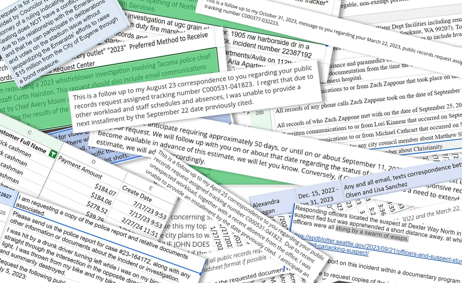 Last December, InvestigateWest asked the five biggest cities in Washington, Oregon and Idaho for their log of records requests from November 2022 through November 2023. We also asked each city for a week’s worth of communications involving either the mayor or the city administrator or managers.