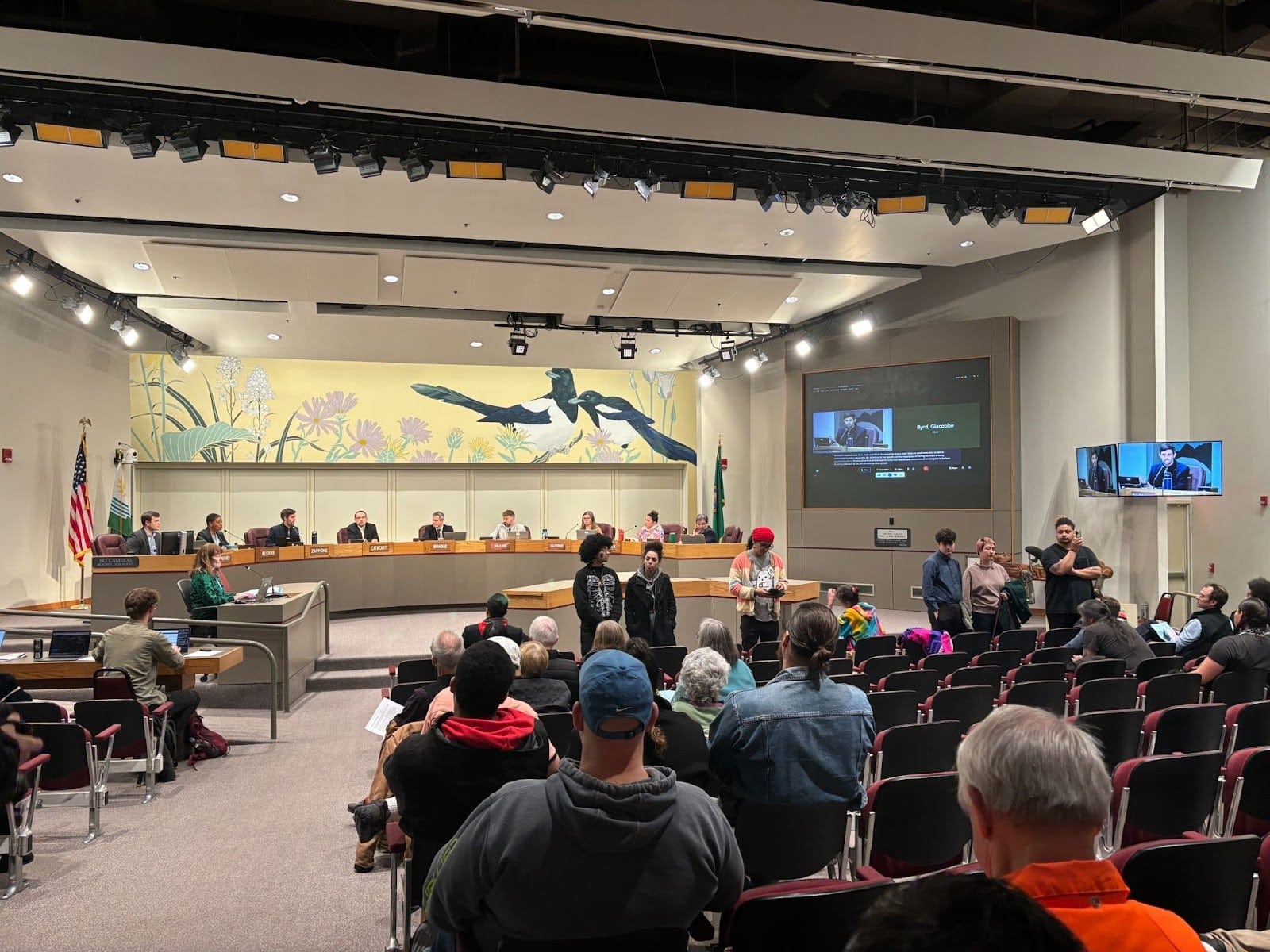 For activists, peaceful protest is a way for people to silently voice their dissent or support, without having to scramble for an Open Forum slot, share their name publicly or research legislative items. And, activists say, someone standing in the room shouldn’t prevent council members from doing city business.