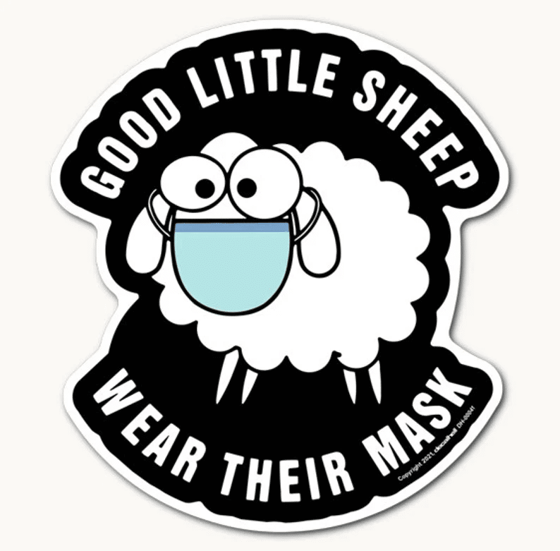 Those of us who accept the protections that masks and vaccines provide have likely encountered people like this in our daily lives. A veterinary technician told me her job now includes being screamed at and cussed out by (human) clients when she asks them to mask up. I’ve seen a home-Sharpied yard sign declaring I WILL NOT be vaccinated! Come try it!! Trucks and SUVs cruise around town with window decals like F*ck Inslee and endless variations on the theme of mask users being sheep and sheeple.