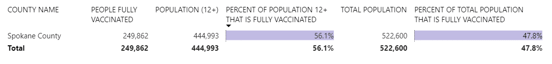 Yet in Spokane, vaccine counts are a full 20 percentage points lower.