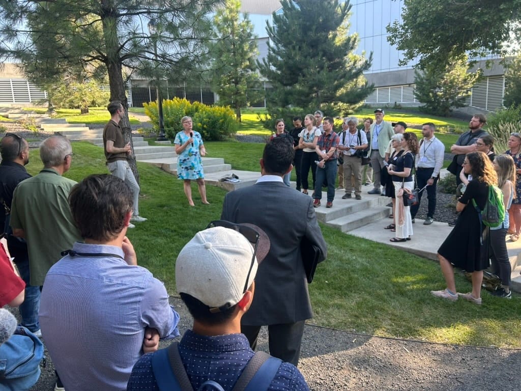 During the Walk & Talk, Barb Chamberlain, Director of WSDOT’s Active Transportation Division and former bicycling activist in Spokane, encouraged attendees (many of whom work in transportation elsewhere) to dream big when considering how wide rights-of-way can be transformed to serve those walking, cycling and taking transit.