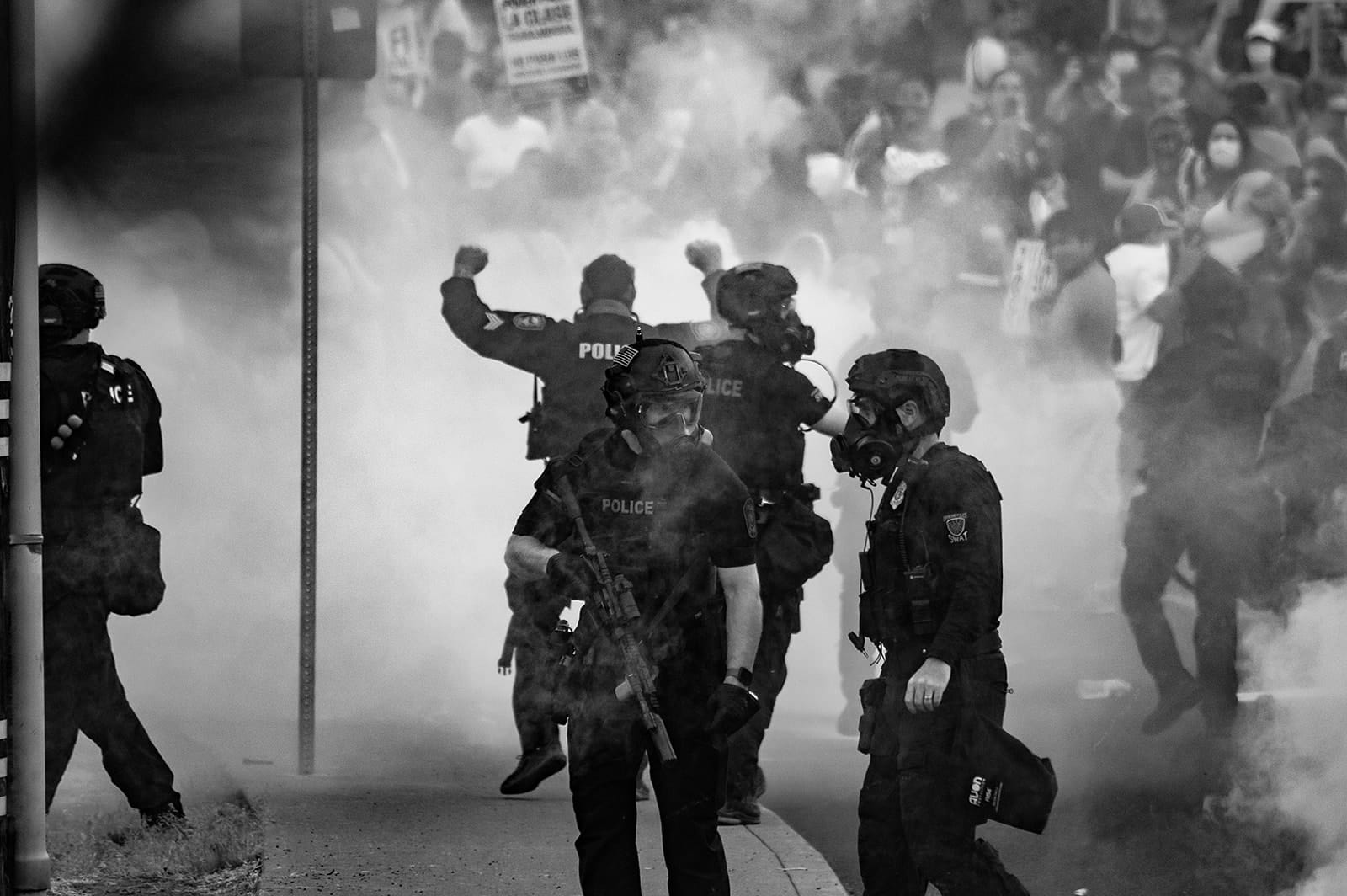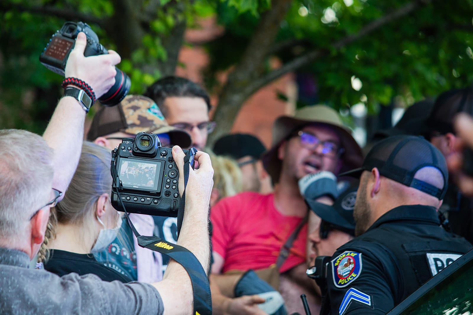 There was one smoke bomb with green smoke which may have been tear gas, as multiple reporters felt stinging in the eyes and mouth after its deployment. Pepper balls were shot by SPD into the crowd, as were rubber bullets by the Spokane County Sheriffs.