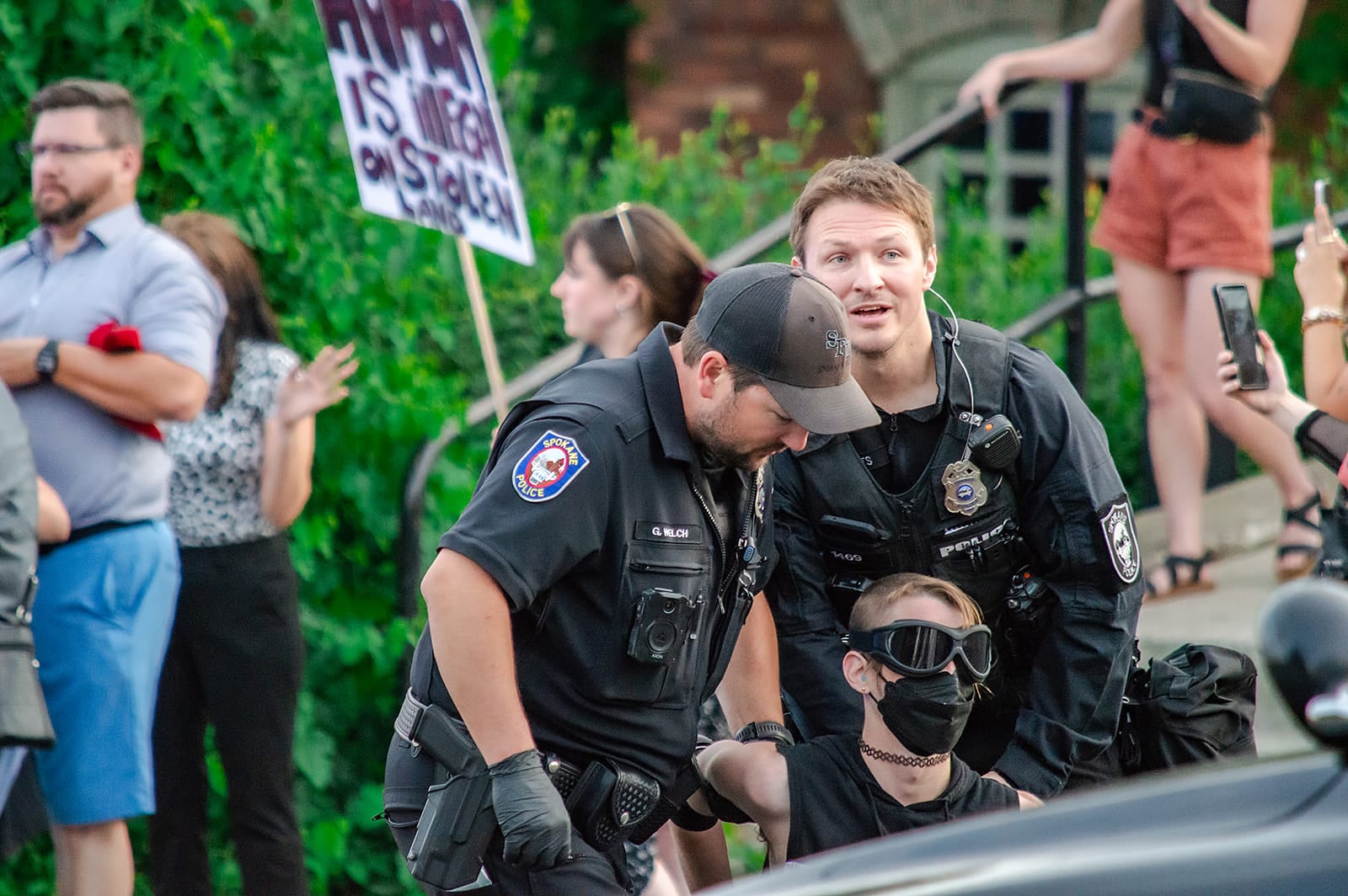 It was unclear at first who exactly was arrested at the protest, as law enforcement was arresting people and placing them in plastic cuffs on the sidewalk before transporting them to the Spokane County Jail.