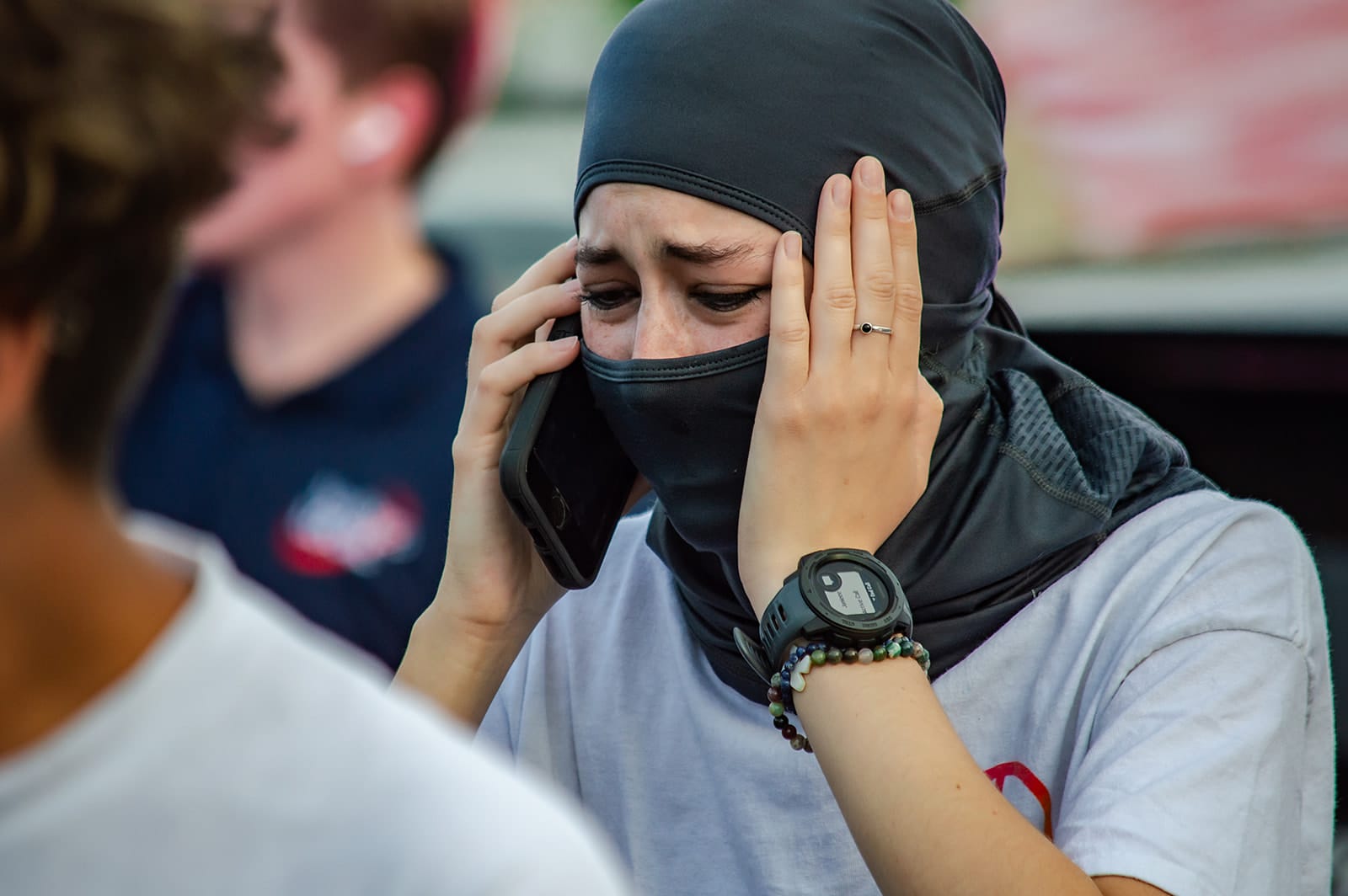 6:34 pm: Protestors, including Tomeo Sam, Garcia and Stuckart linked arms on one side of the transport van to stop it from leaving.