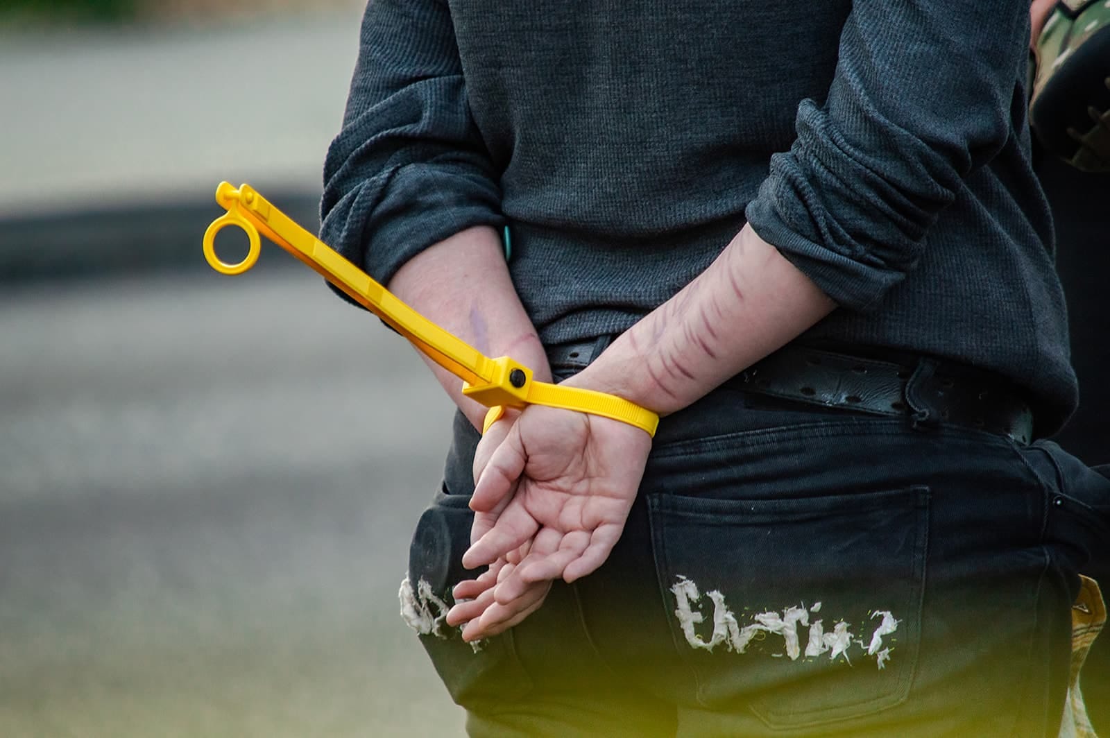 A protestor held in plastic restraints. Photo by Sandra Rivera.