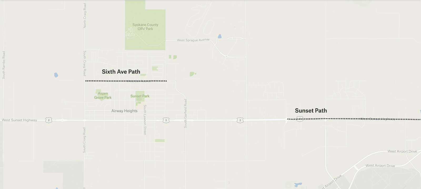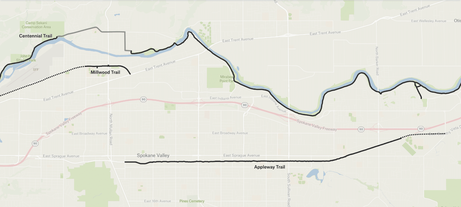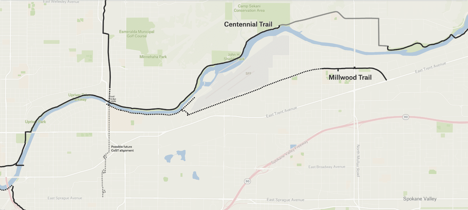 - Spokane Valley hopes to continue to trail from Felt’s Field to Millwood, but that is as-yet unfunded.