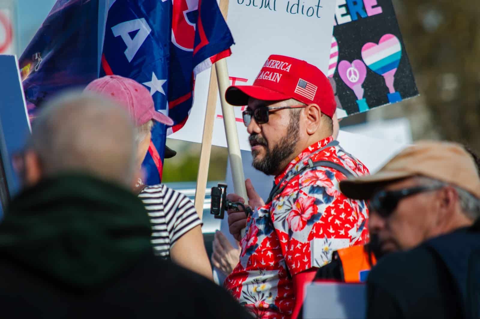 In other places of the park, the vibes were different. A small group of counterprotestors — about a dozen when Rivera saw them — held their own pro-Trump gathering.