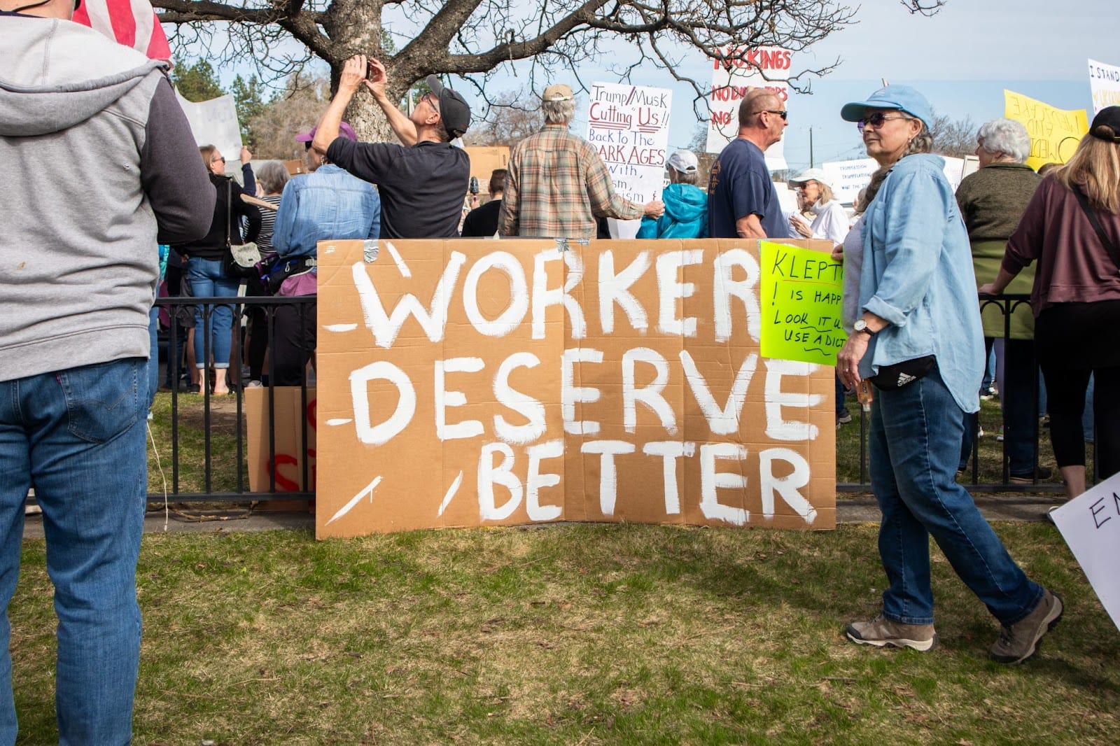 While Rivera wasn’t unable to chat with any of the union organizers, there was also a strong labor presence at the event, which was co-sponsored by the Spokane Regional Labor Council. Signs held above the crowd called out class warfare and the plight of workers.