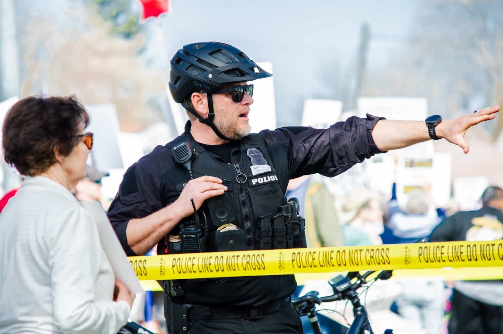 There was a much higher police presence in that area, too, with police tape and officers separating the two groups.