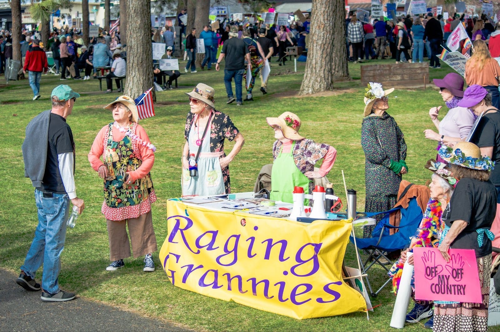 And on the other side of the spectrum, the Raging Grannies, who have a long history of protesting in Spokane, had a booth with petitions for people to sign.