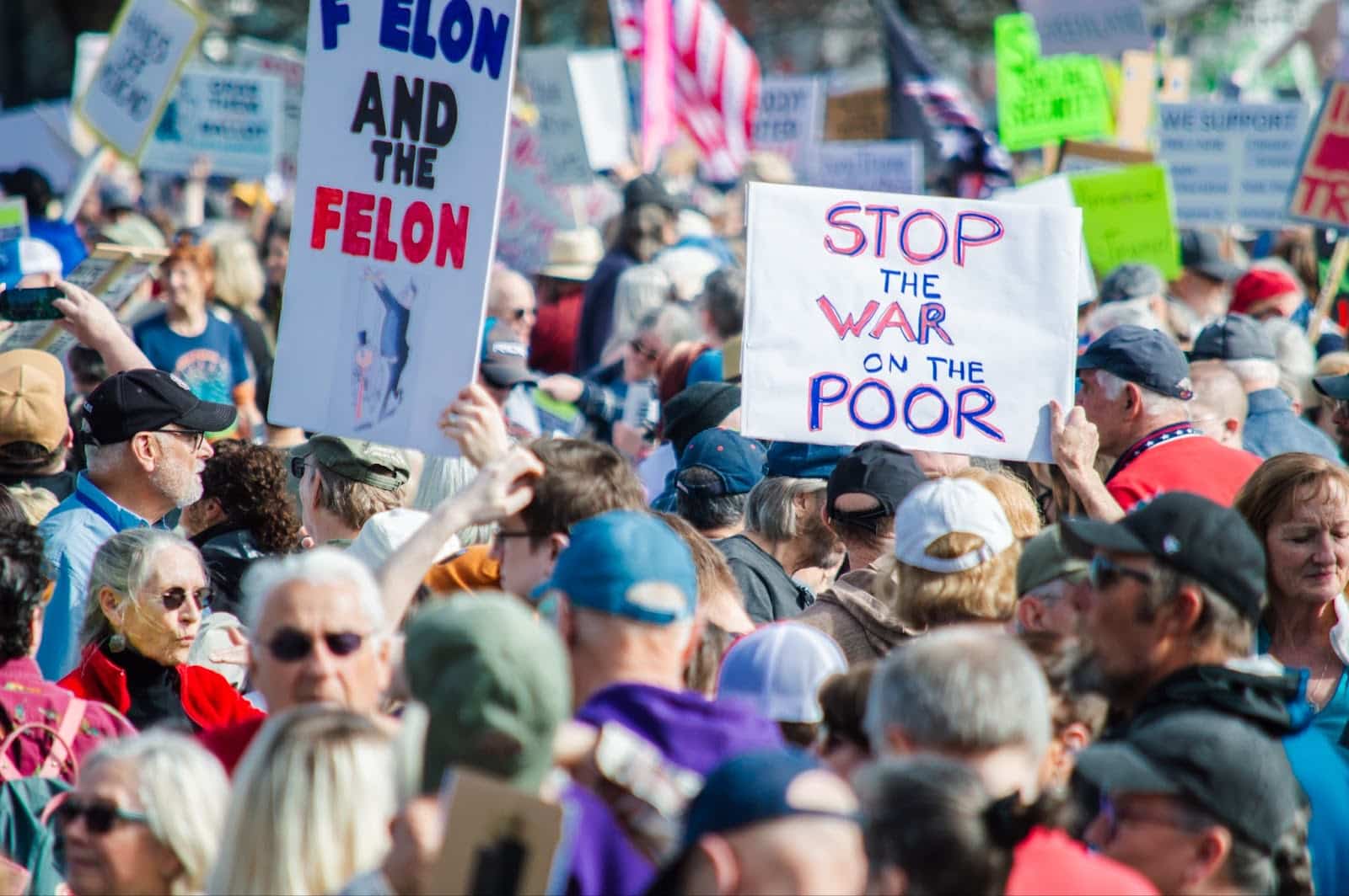A survey of the signs in the crowd revealed a slew of injustices the crowd was there to rally against: