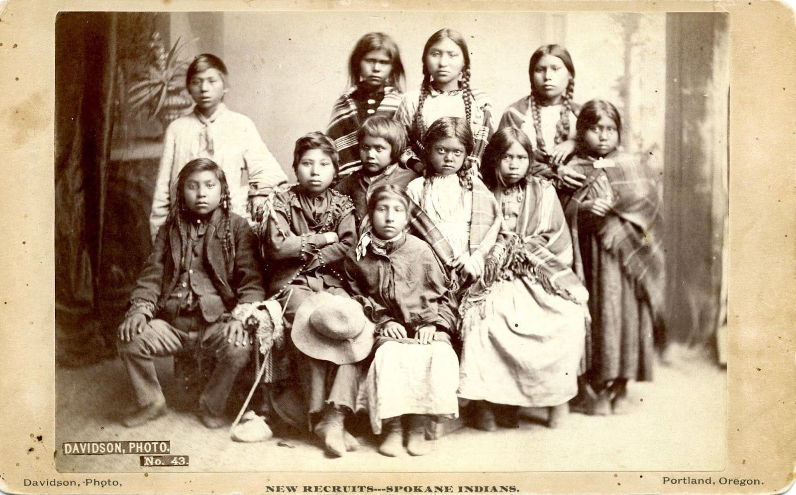 Founded in 1880 as the Forest Grove Indian Training School, children from all over the region were brought to Chemawa. One historical photo depicts children from the Spokane tribe under the chilling title “New Recruits.”