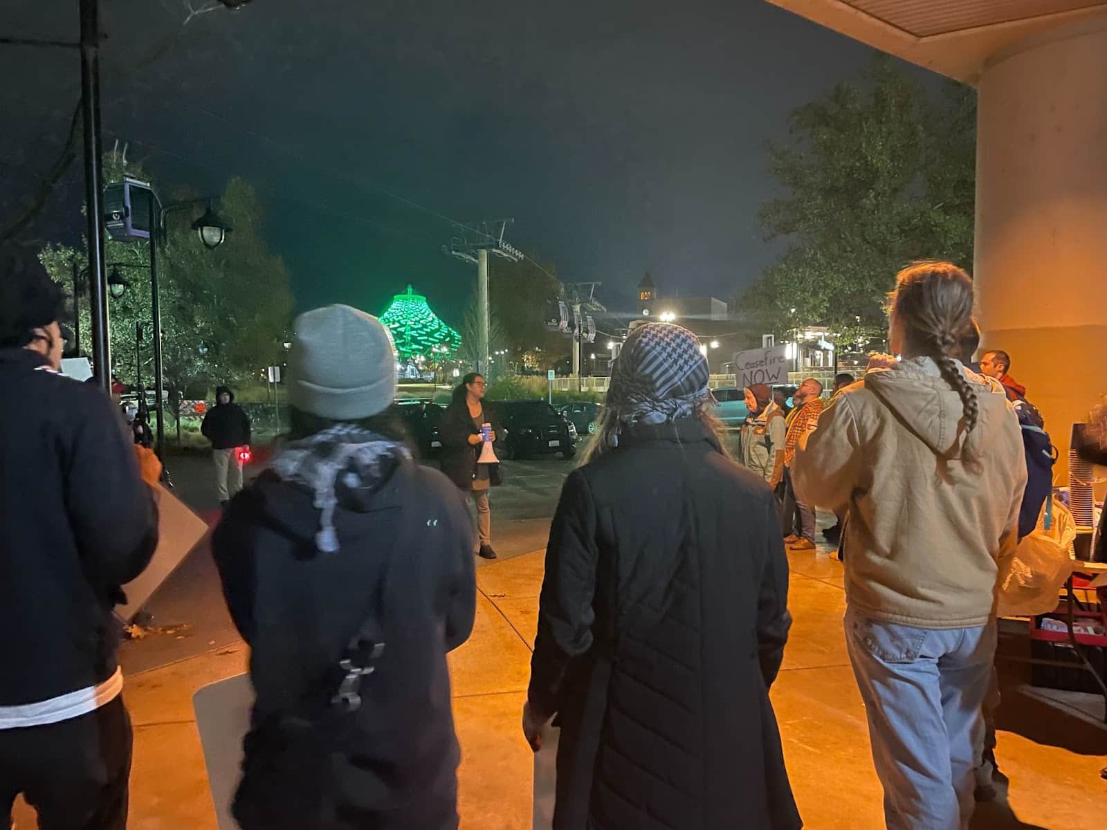 Before last night’s city council meeting even began, Forral spoke to a crowd of protesters sign-waving and chanting outside the building to request the council retract the pro-Israel resolution.