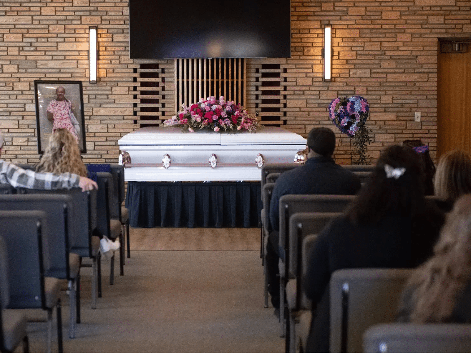 Family, school children and community members filled the Riplinger Funeral Home in Cheney Tuesday morning to remember Sarah. They sang a South African hymn, prayed and listened as Joseph, standing next to a white casket with pink trim, spoke about her sister before saying goodbye for the last time.