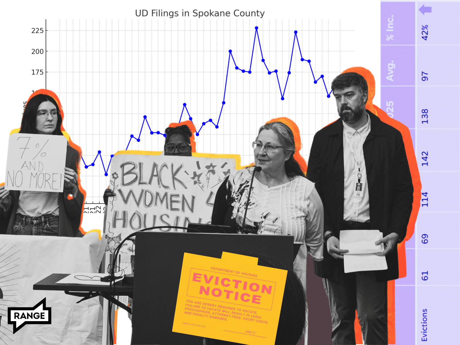 According to statistics from the Spokane Police Department (SPD), in the first three months of 2023, when 52.1% of Spokane renters were rent-burdened, SPD received 114 calls for their officers to assist with evictions. In the first three months of 2025, they’ve already received 138 calls for evictions, more than a 20% increase.