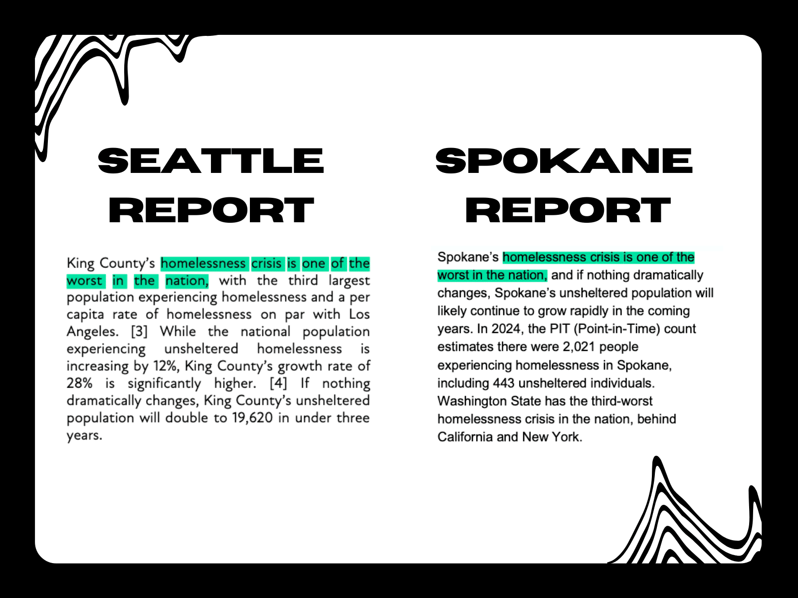 - “Spokane’s homelessness crisis is one of the worst in the nation, and if nothing dramatically changes, Spokane’s unsheltered population will likely continue to grow rapidly in the coming years.”