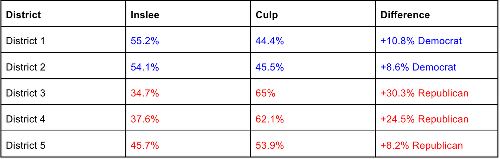 Four candidates faced off in the primary: two Republicans, one Democrat, and one independent candidate. The Democrat, first-time candidate Maggie Yates, ran a well-executed campaign that earned her 44.5% of the vote as of Monday, August 8th. She performed well in the City of Spokane, Airway Heights and Cheney. Yates did well in more diverse, younger and economically distressed precincts. She earned more than 50% of the vote in 32 of 90 precincts compared to French who is only winning 13 precincts by 50% or more. Being the top vote-getter in the primary gives the campaign bragging rights and momentum, but Yates will need a robust general election campaign to overcome the unfavorable partisanship of the district where Republican Loren Culp won 54% of the vote for governor in 2020. She’ll need to do almost 5 percent better than her primary performance — and 4 percent better than Inslee did against Culp to prevail.
