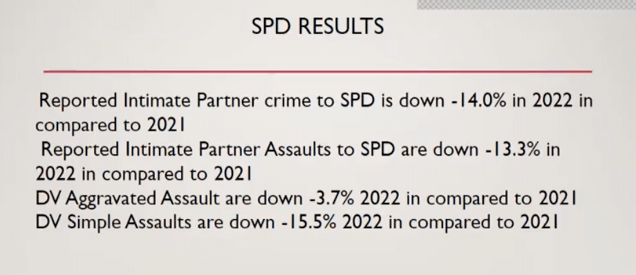 According to SPD, the lack of communication was due to their urgency to create a new Violent Crimes Task Force (VCTF), which required moving staff from the DV Unit. “We wanted to give as much notice as we could,” said Corporal Nick Briggs, a SPD public information officer. “The need for this violent crimes task force was a very acute one and a very immediate one,” he said. “Violent crime and saving people's lives has to take precedent.”