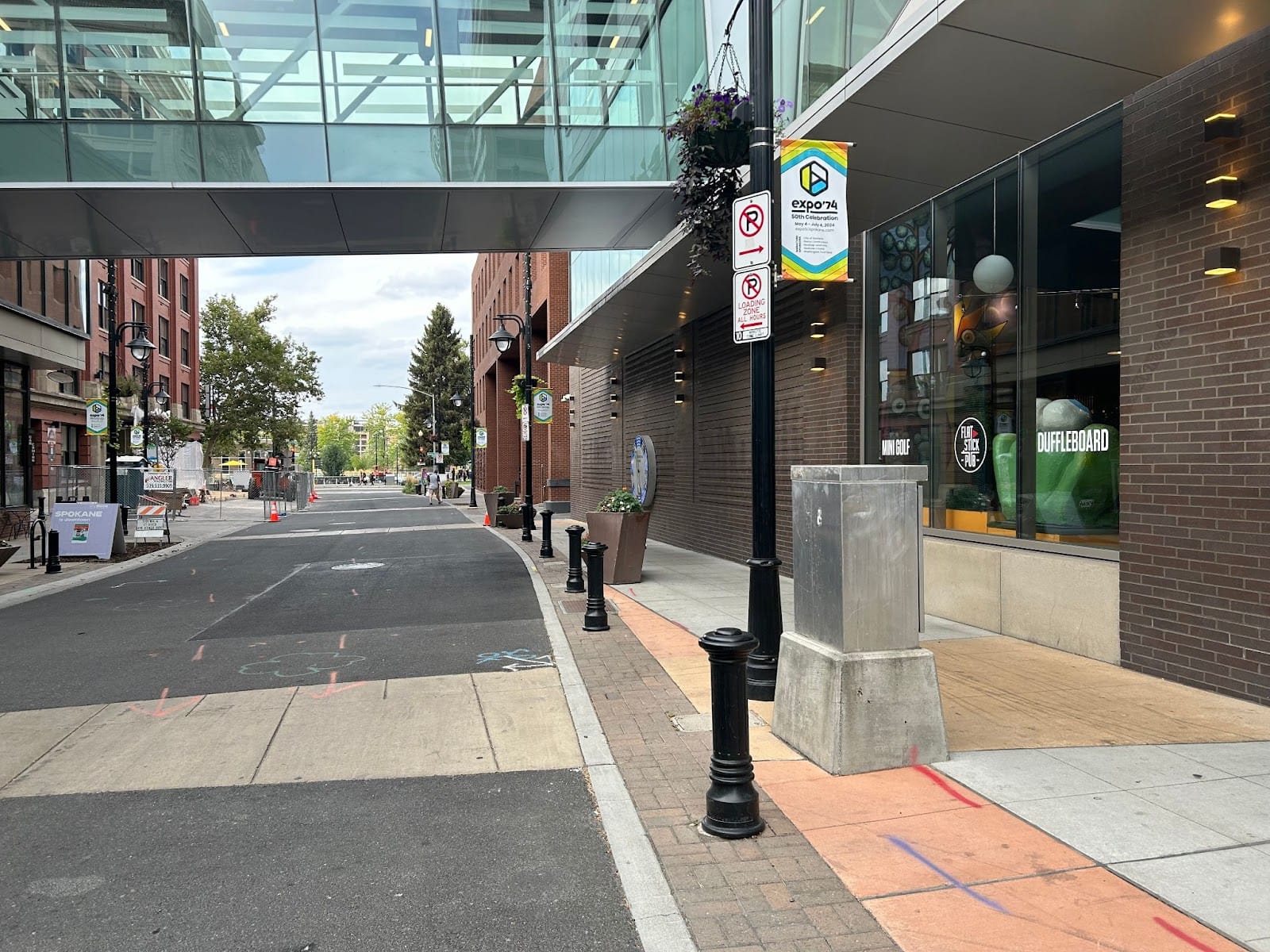 The project runs just over a half mile, from Lincoln Street on the west side to Division Street on the east. This stretch is a major downtown destination for both locals and visitors, positioning it as a corridor of enormous economic value: it links the Spokane Convention Center, the First Interstate Center for the Arts, three hotels (including The Davenport Grand), River Park Square, bars and restaurants and downtown’s crown jewel Riverfront Park.