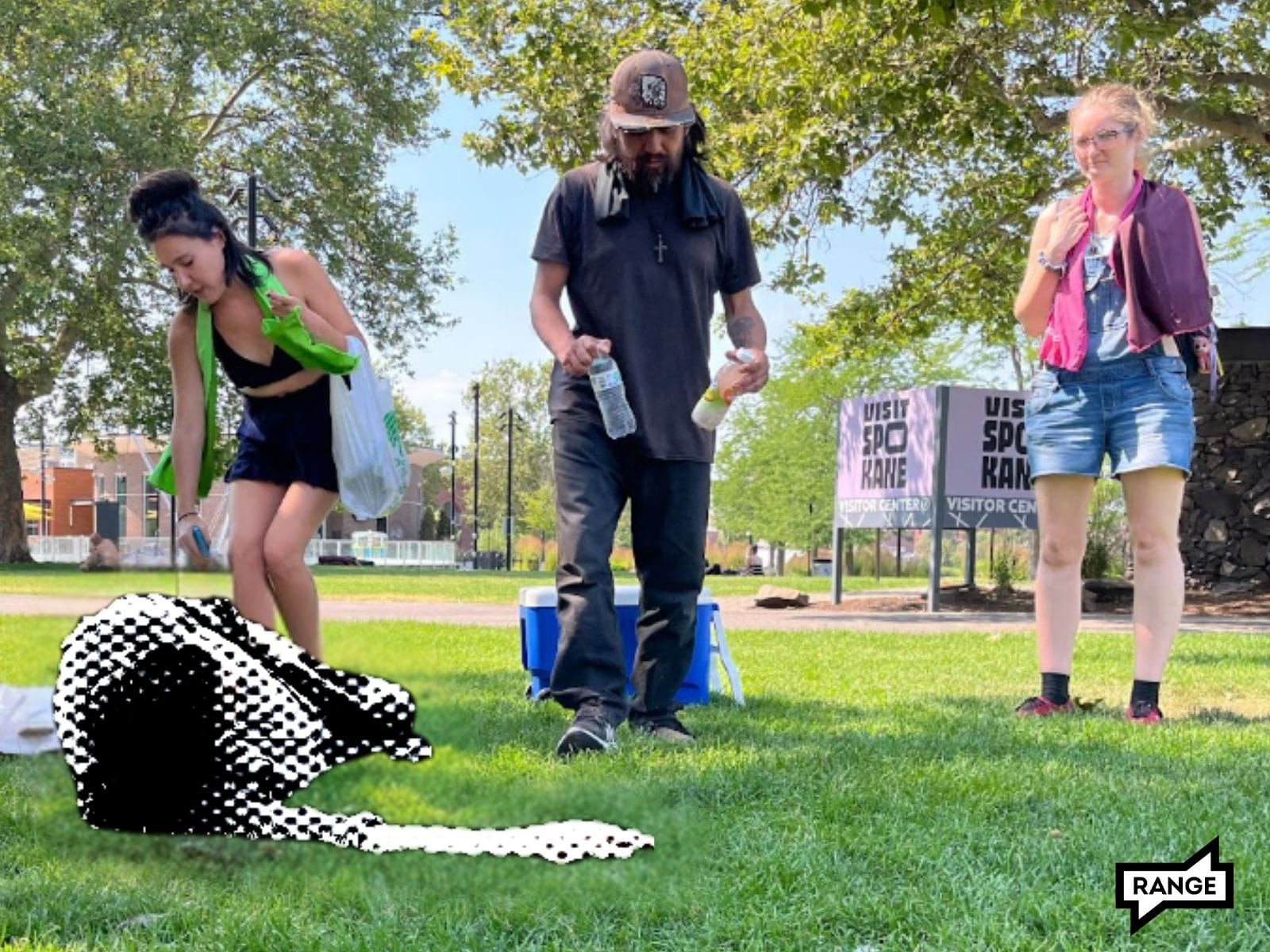 Walking from a “cooling station” at City Hall toward the southwest corner of Riverfront Park Wednesday, Crystle Burgett approached five or six unhoused people catching naps in shaded spots scattered across one of the bright green lawns. It was 104 degrees Fahrenheit, and she was on a mission she felt was a specific duty for someone like her.