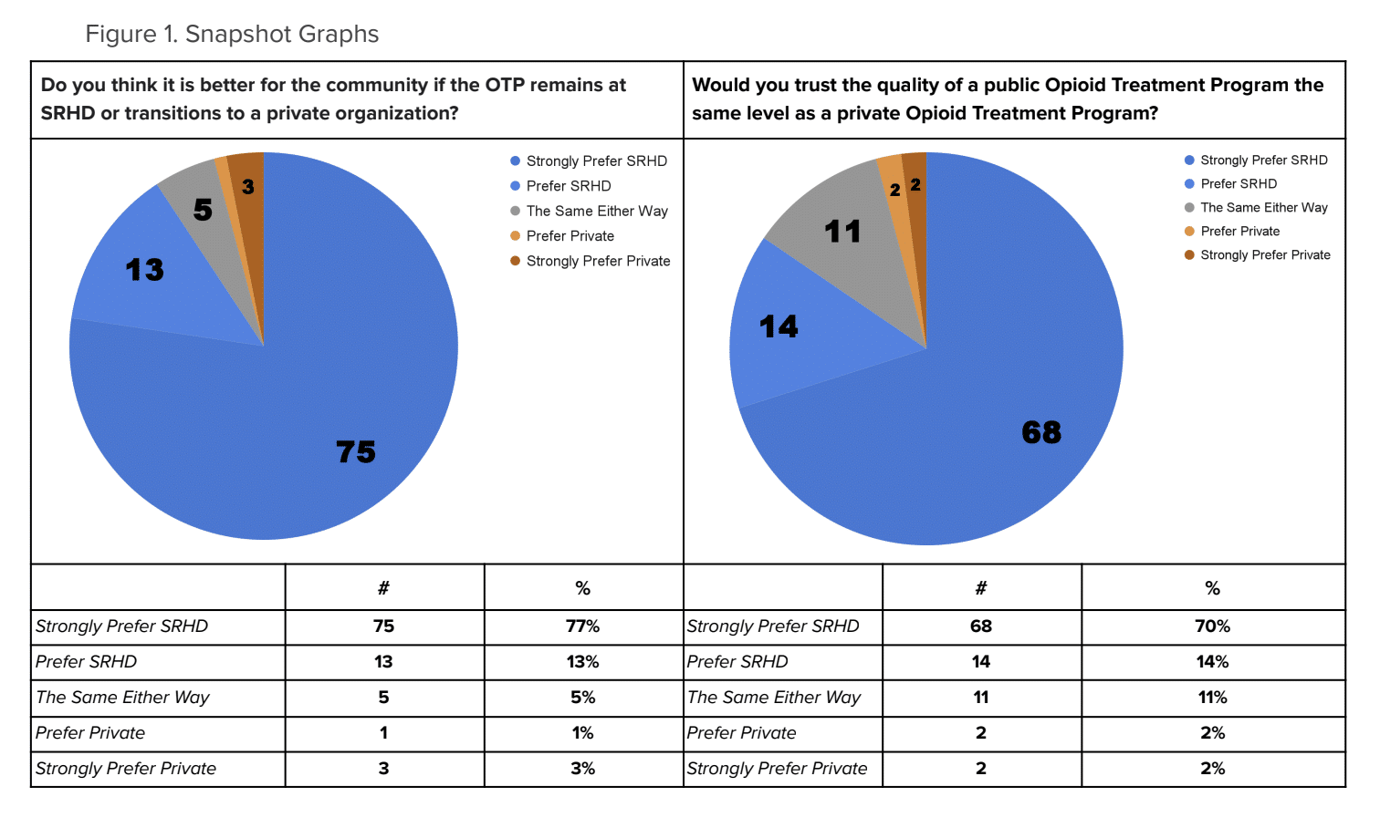 Of the five people who were in favor of privatization, morrow notes that three identified as having loved ones addicted to opioids, “but none self-identified as users of OTP at SRHD or otherwise.”