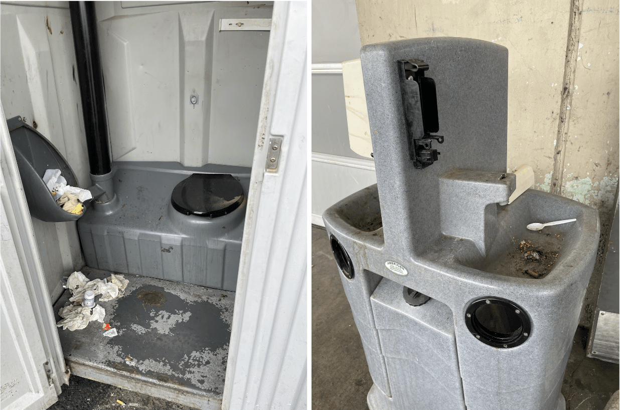 Shelter guests still endure cold showers, unreliable hand-washing stations and portable toilets which are outside because TRAC — which was built as a warehouse — does not have adequate plumbing or facilities for the hundreds of residents it is currently permitted to house.