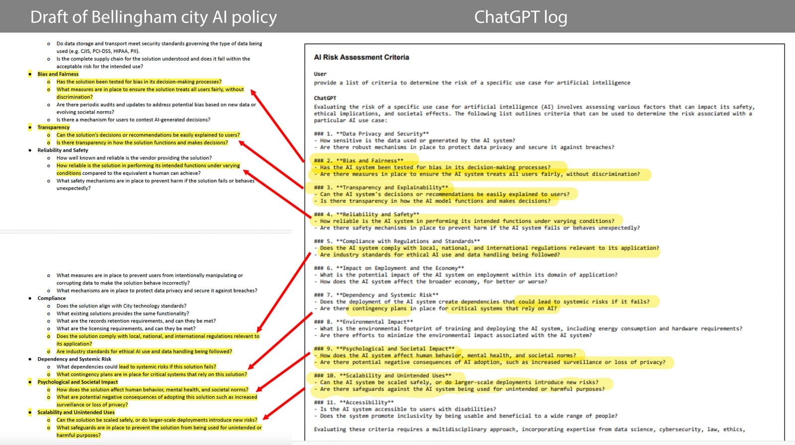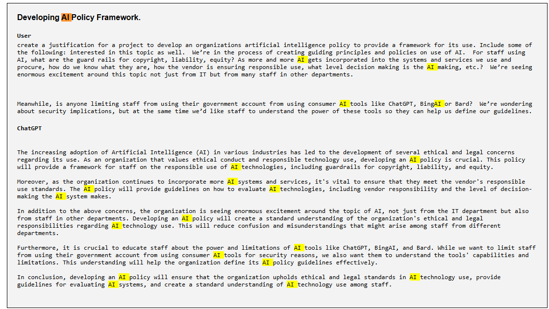 Significant portions of this draft of an AI policy for the Bellingham City government were copied directly from ChatGPT. (Source: City of Bellingham via public records request)
