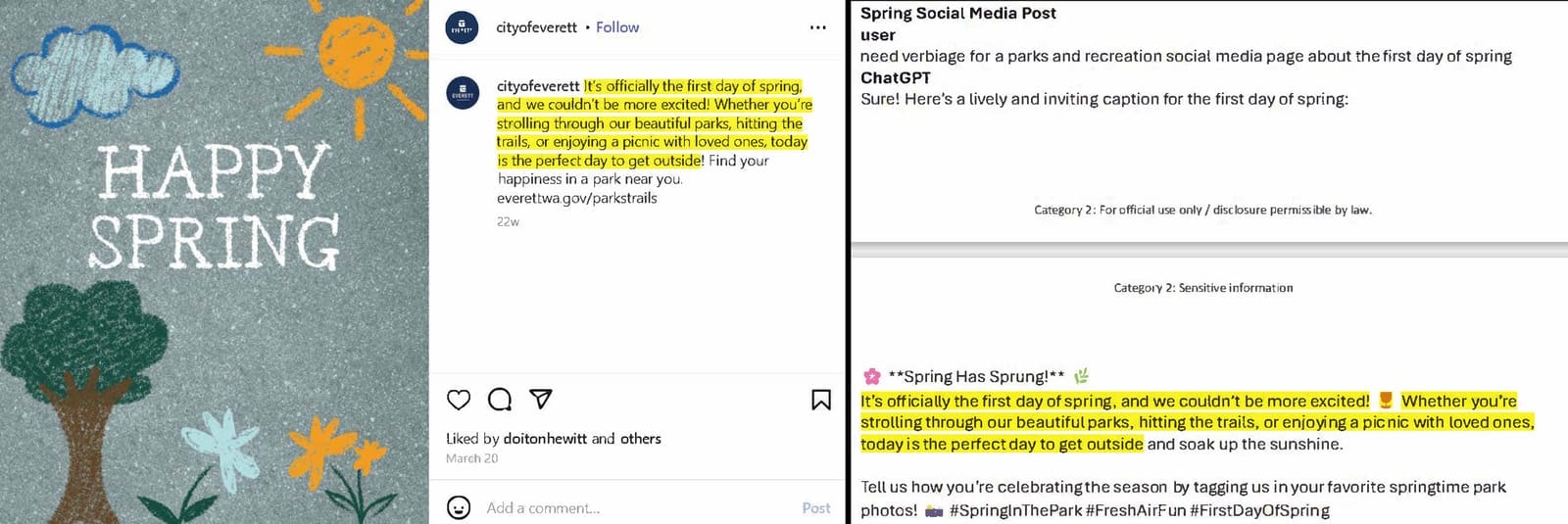 Some turned to ChatGPT to generate social media copy, such as a lighthearted post about the first day of spring for Everett’s Instagram page.