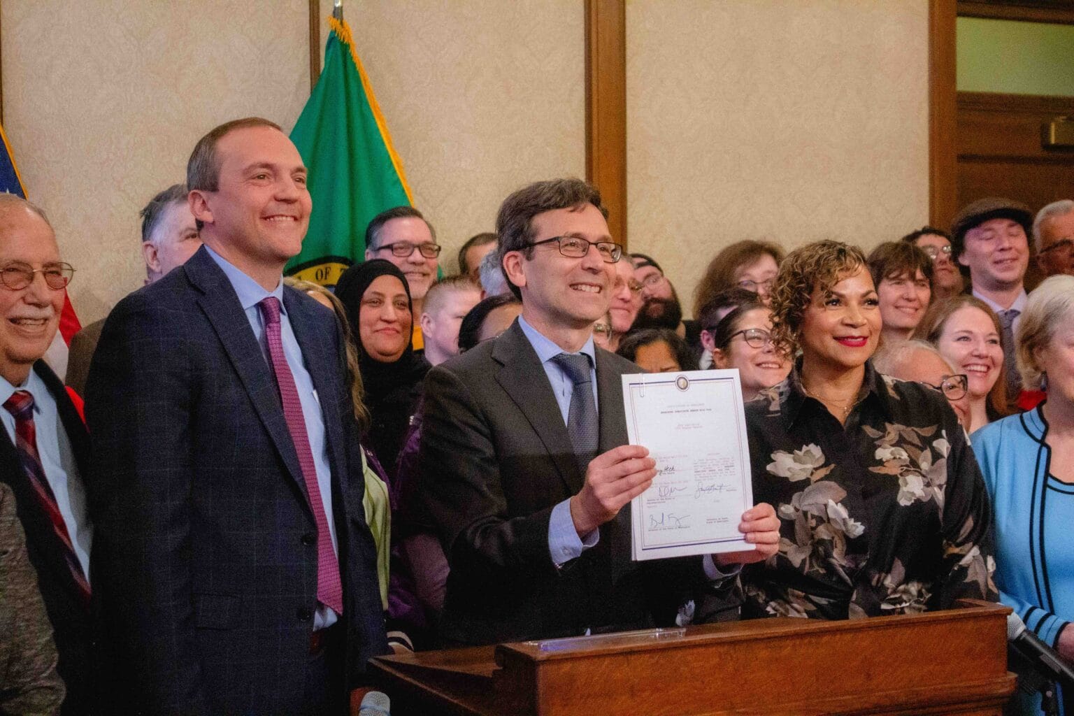 “Allowing striking workers to access unemployment insurance benefits creates a more level playing field for workers to have the resources they need to effectively bargain for better working conditions,” Ferguson said before putting his signature on Senate Bill 5041.