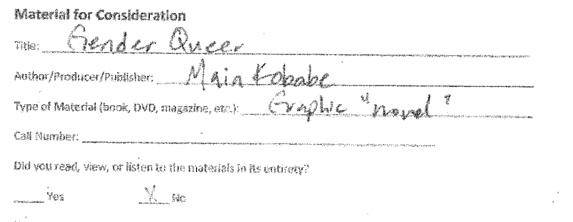 Language used in Zasada’s challenge mirrors the national angst over literature with queer storylines: “pornographic” is the primary complaint against Gender Queer.