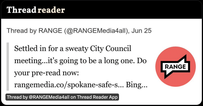 This week’s Spokane City Council was long, sweaty and honestly, kind of wild. The body voted on The Janet Mann Safe Streets Now! resolution, a few settlements, homelessness funding allocations and an emergency ordinance to move the city to biennial budgeting, among other things. It was all less dry than it sounds at first blush. Read the full thread here, and as always — Editor’s note: our reporters are working fast during these meetings. There may be typos, misspelled names or small errors in quotes that don’t impact meaning or intent.