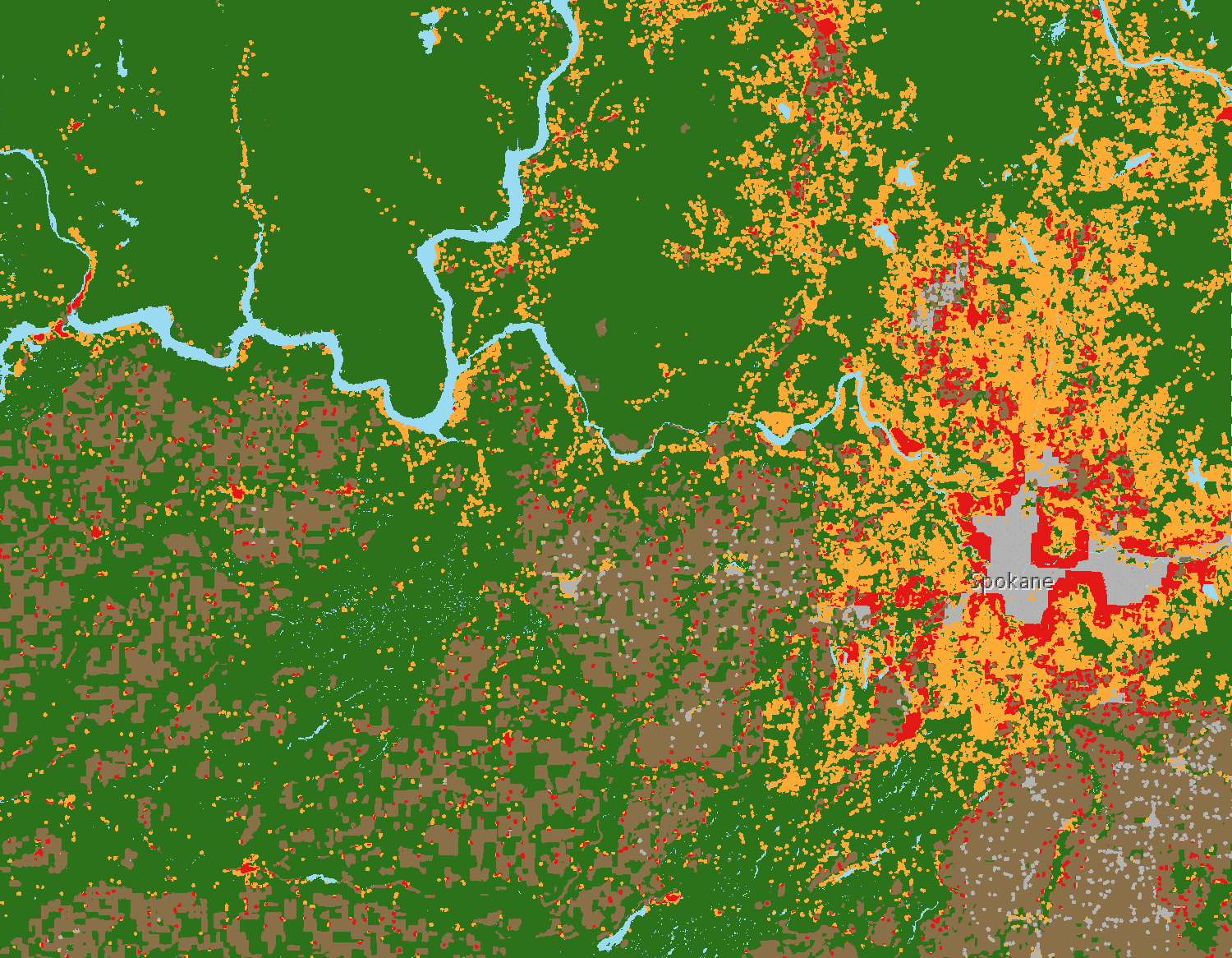 The downside of our confidence in firefighters is that we continue to increase our collective risk to wildfires. Researchers have found that while Americans are moving away from areas most affected by heat waves and hurricanes, we’re actually moving towards areas affected by wildfires. That’s especially true in the Western U.S., where from 1990-2020 there was a more than 47% increase in homes built in the area where unpopulated lands intermix with human settlements, commonly called the Wildland Urban Interface (WUI). A quick browse of Zillow here in Spokane shows scores of lots for sale in the WUI — outside of the Spokane and Spokane Valley urban core all of the county is in areas of elevated fire risk.